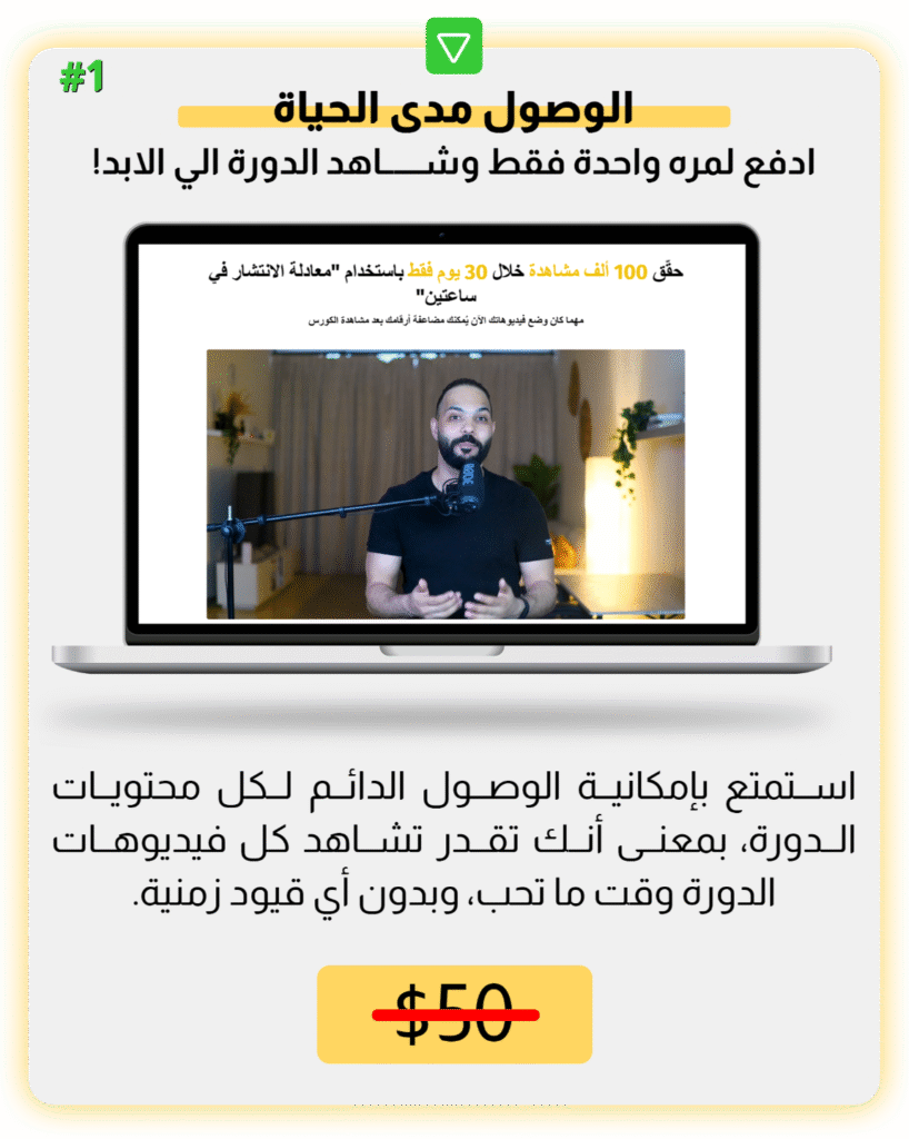 استمتع بإمكانية الوصول الدائم لكل محتويات الدورة – بدون أي قيود زمنية