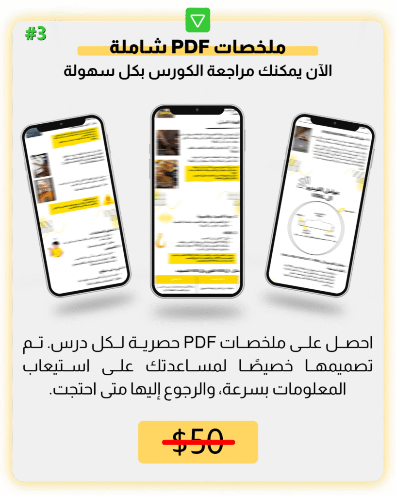 وفي الحقيقة ان يوجد مئات الطلاب اشتركوا في الكورس ولا يوجد طلب واحد لاسترداد المبلغ حيث ان ١٠٠٪ من الطلاب سعدين بمحتوى الكورس